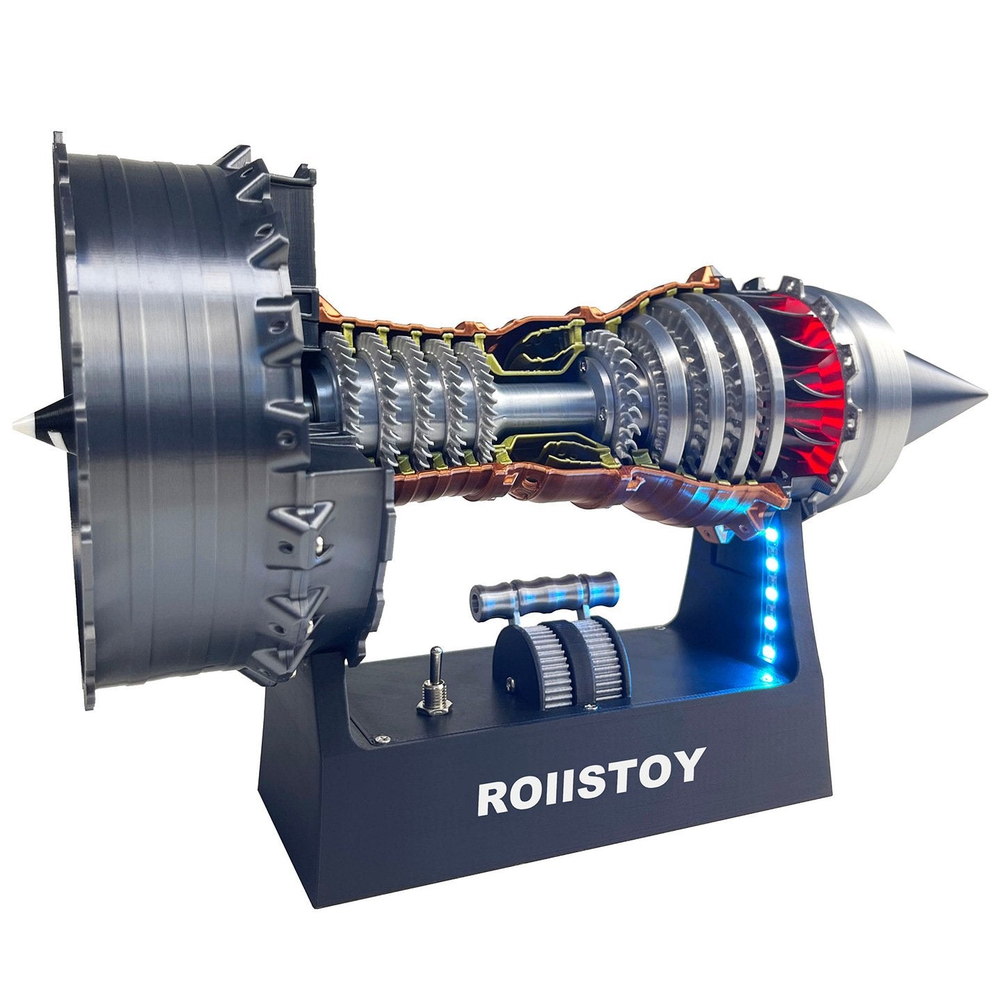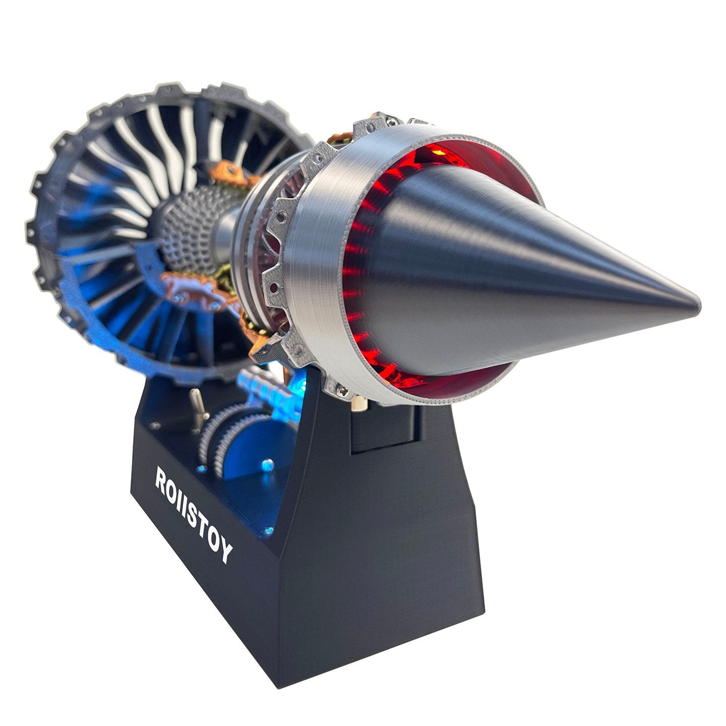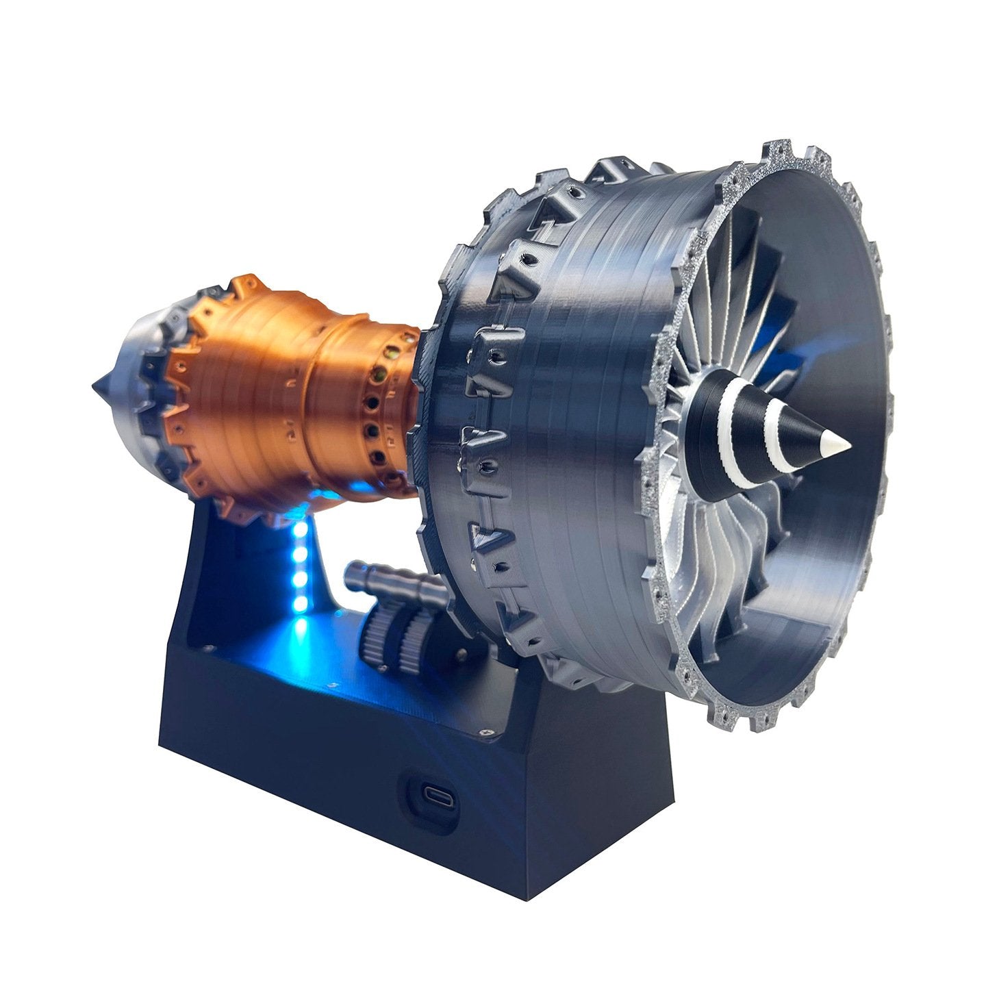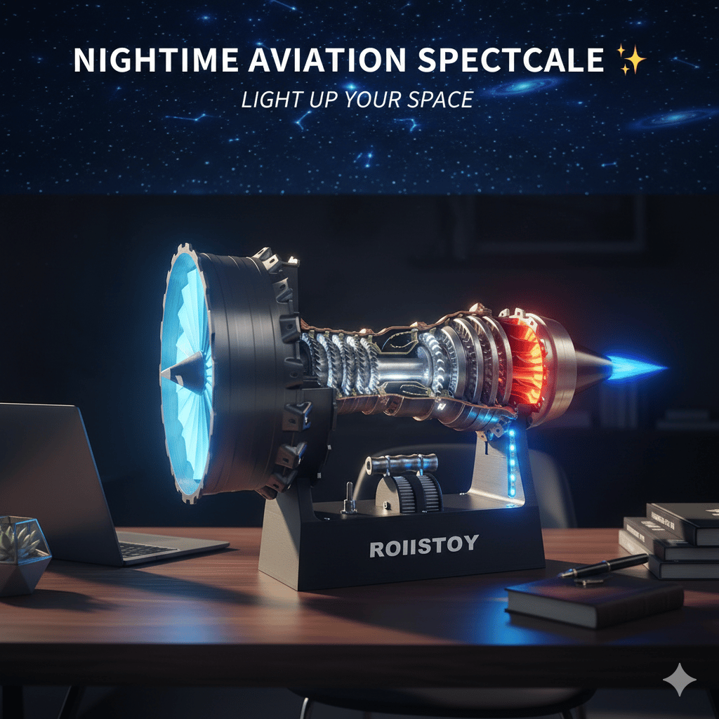 The base features bright, adjustable blue LED lights that highlight the engine’s internal structure—perfect for night displays or showing off to friends. Powered by Type-C charging, it’s easy to keep the lights on for hours (no messy batteries!). It’s a statement piece that glows with engineering pride!